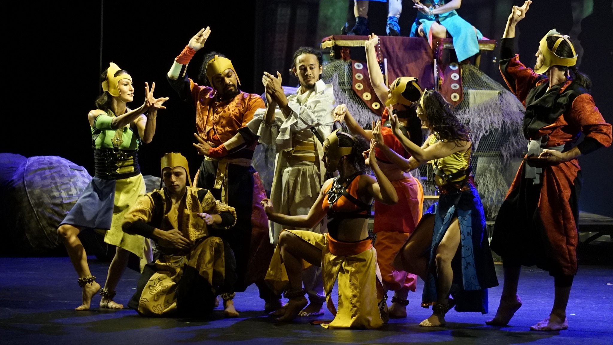 La puesta en escena combina el teatro físico, con la actuación, las artes marciales y las danzas de oriente, además se enriquecerá con un video mapping de “Tito” Fuentes, la música es original de Fabián Arroyo, la escenografía de Carlos Schmidt Fonseca, el diseño de iluminación de Jody Steiger y el diseño de vestuario de Erick Cascante.