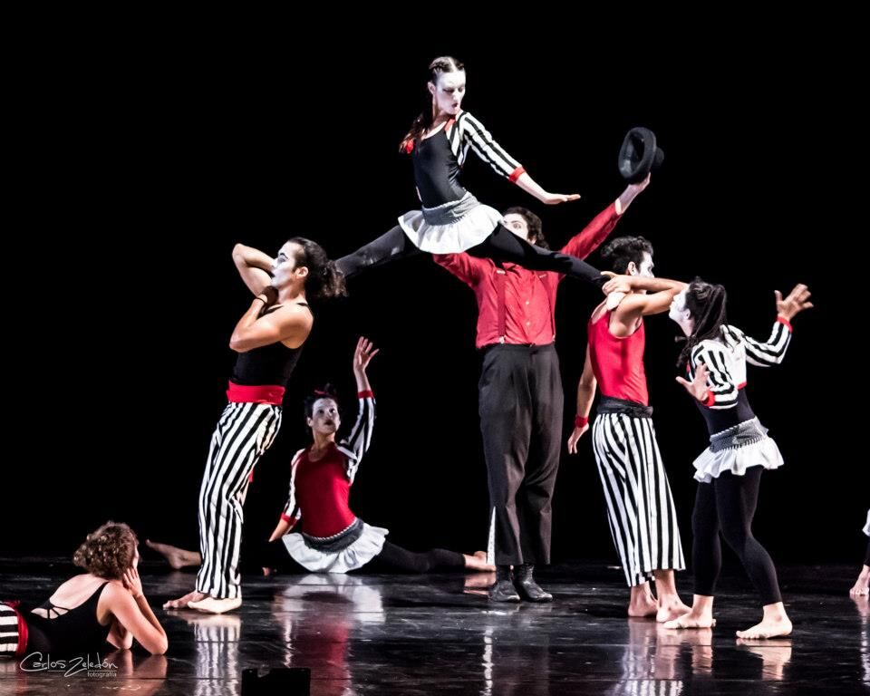 Sala PrincipalEspectáculo de 45 minutos, ágil y divertido, de mucha interacción con el público, en el que se fusionan la danza y el teatro con diferentes disciplinas circenses como los malabares, acrobacia, acrobalance, danza aérea y clown. En ella un grupo de payasos mimo se encuentran con dos payasos distintos. Ellos, que al principio no vienen con las mejores intenciones, termina deseando formar parte de este grupo que defiende a capa y espada a cada uno de sus integrantes.
