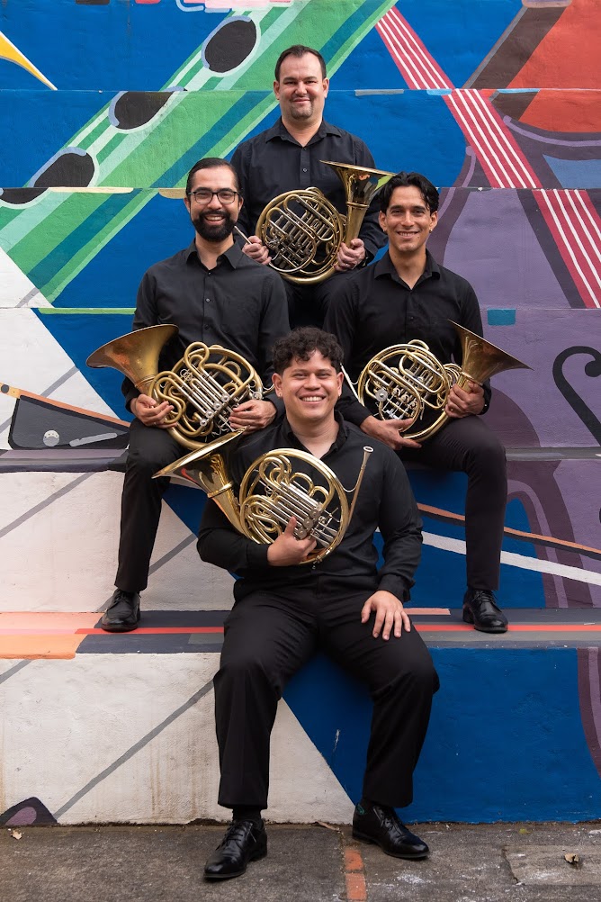 Sala PrincipalEl Cuarteto Costarricense de Cornos, integrado por Mauricio Villalobos, Adrián Arroyo, Fabián Murillo y Daniel Rivas, reúne a cuatro intérpretes formados en el Instituto Nacional de Música y la Universidad de Costa Rica, con estudios de posgrado y perfeccionamiento en Israel, Alemania, Brasil, Suiza e Italia. Sus miembros han colaborado con orquestas y ensambles en América, Europa y Medio Oriente. Actualmente, si desempeño principal es parte de la Orquesta Sinfónica Nacional de Costa Rica, así como la Banda Nacional de San José y el profesorado de la Universidad de Costa Rica. Fundado en 2025, el cuarteto se dedica a difundir la riqueza del repertorio para corno, con especial énfasis en la creación y proyección de música costarricense.