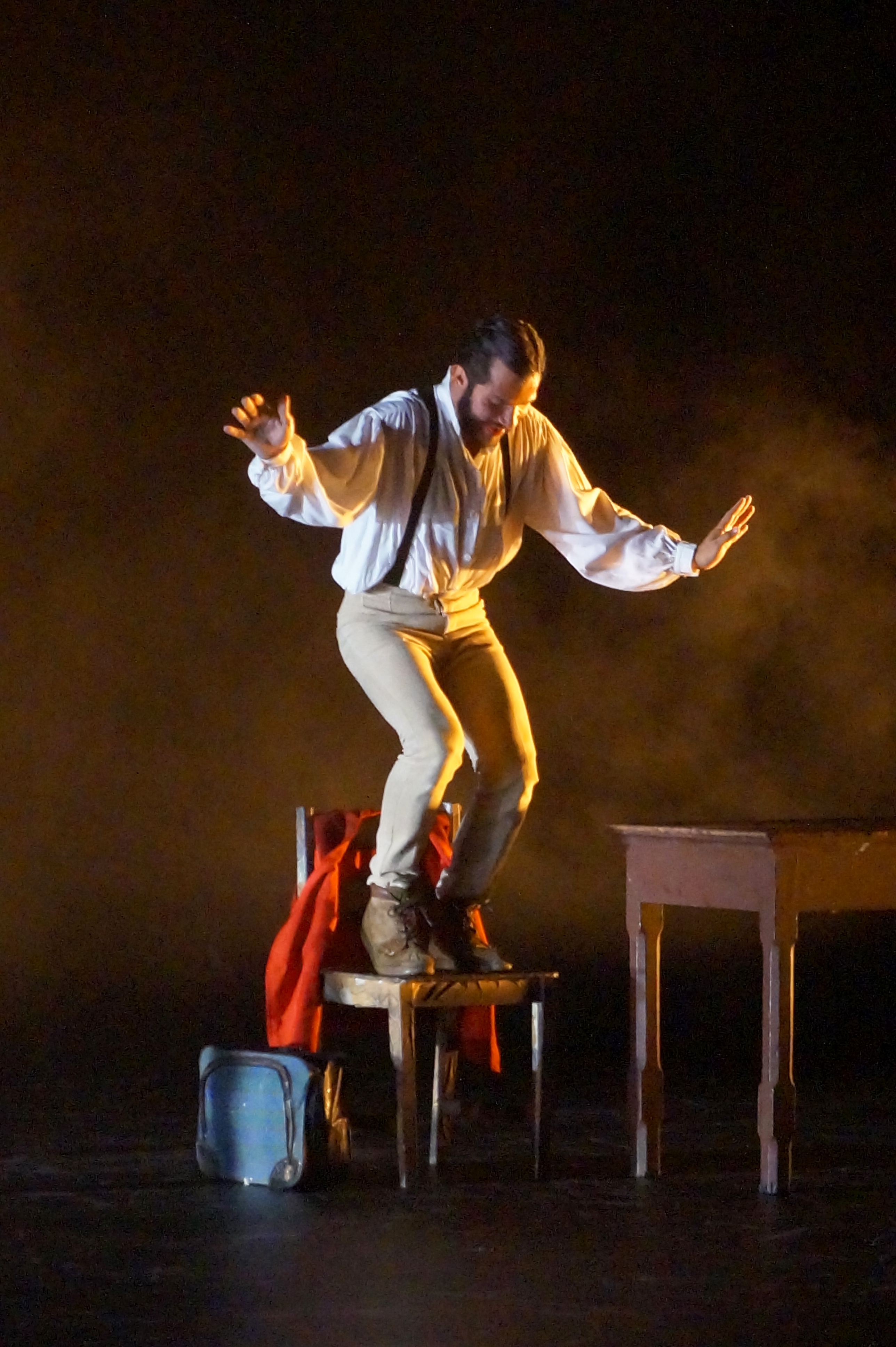 Esta puesta en escena muestra el proceso de duelo después de la muerte de un ser querido. Dos hombres que no se conocen entre ellos ni comparten un mismo tiempo ni espacio, pero si un mismo dolor: la pérdida de su único hijo. A partir de esto, cada personaje se desestabiliza y su relación consigo mismo se vuelve conflictiva.