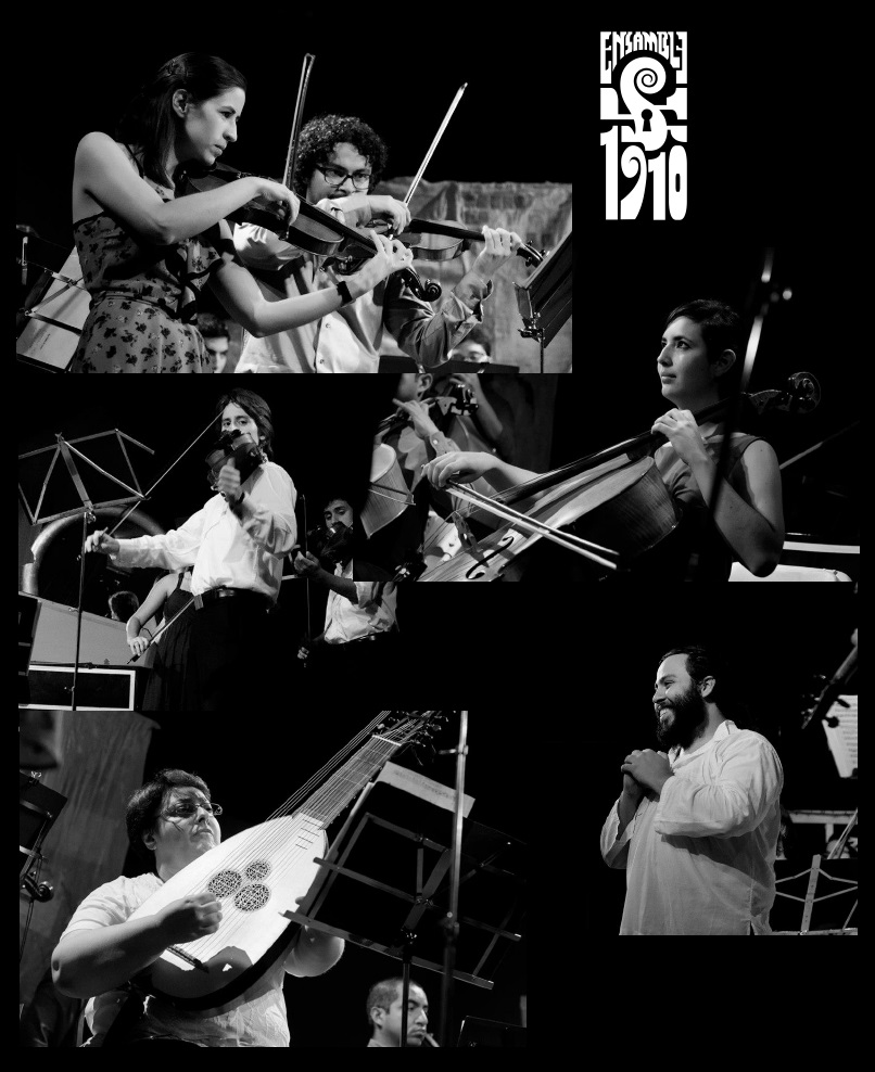 “Ensamble 1910” se fundó en el 2010 y se encuentra integrado por Mariana Salas, Violín; Azeneth Loásiga, Violín; Lucía Leandro, Viola; Juan Rubio, Violonchelo;Tania Vicente, Tiorba; María Clara Vargas, Clave; Túpac Ulloa, Flauta Traversa y Alberto Jara, Contrabajo y Dirección Artística. Todos son músicos profesionales, que forman parte de distintos proyectos artísticos en el país.