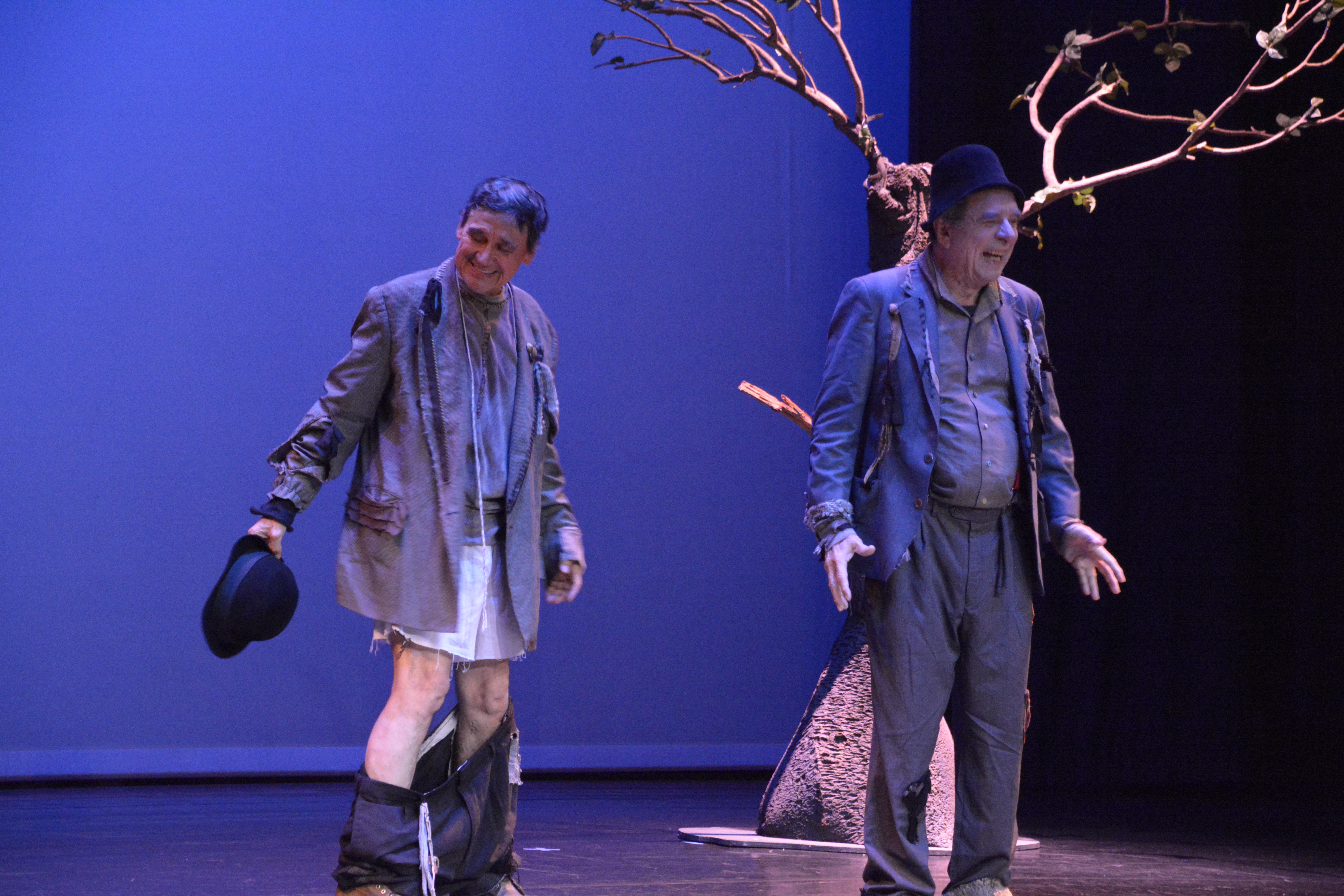 “Esperando a Godot”, la obra clásica del Teatro de lo absurdo, nos muestra a dos vagabundos Estragon y Vladimir, los cuales esperan cerca de un árbol la llegada de Godot. Durante esa espera perderán el tiempo jugando verbalmente, haciéndose preguntas, pensando en suicidarse o marcharse, encontrándose y desencontrándose en el mismo lugar, todo eso mientras reciben distintas visitas que anunciarán o no, la venida de Godot.