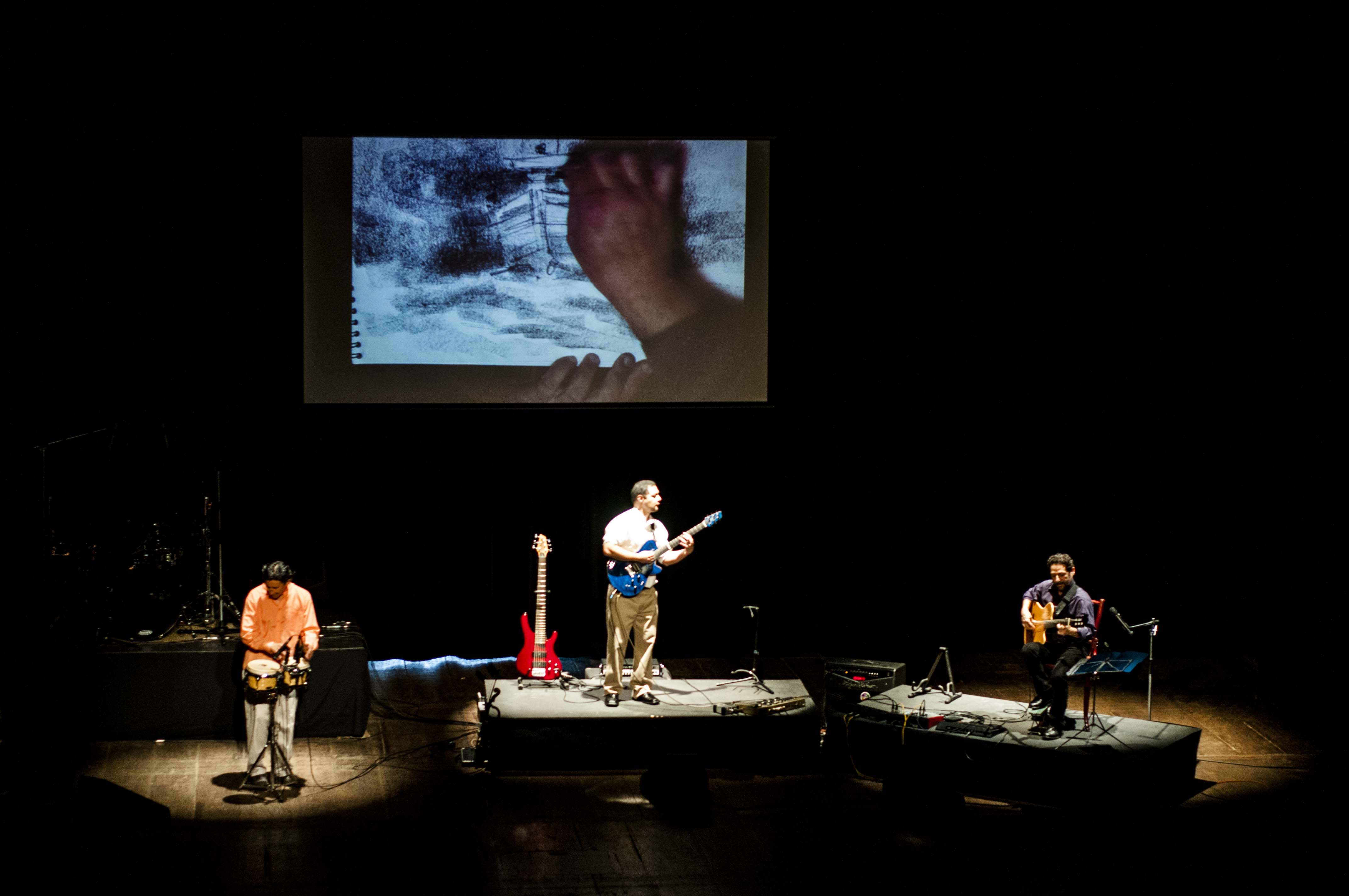 Mientras los músicos ejecutan sus instrumentos, el pintor realiza su trabajo en total concordancia con la música, resultando una propuesta muy enriquecedora y diferente.