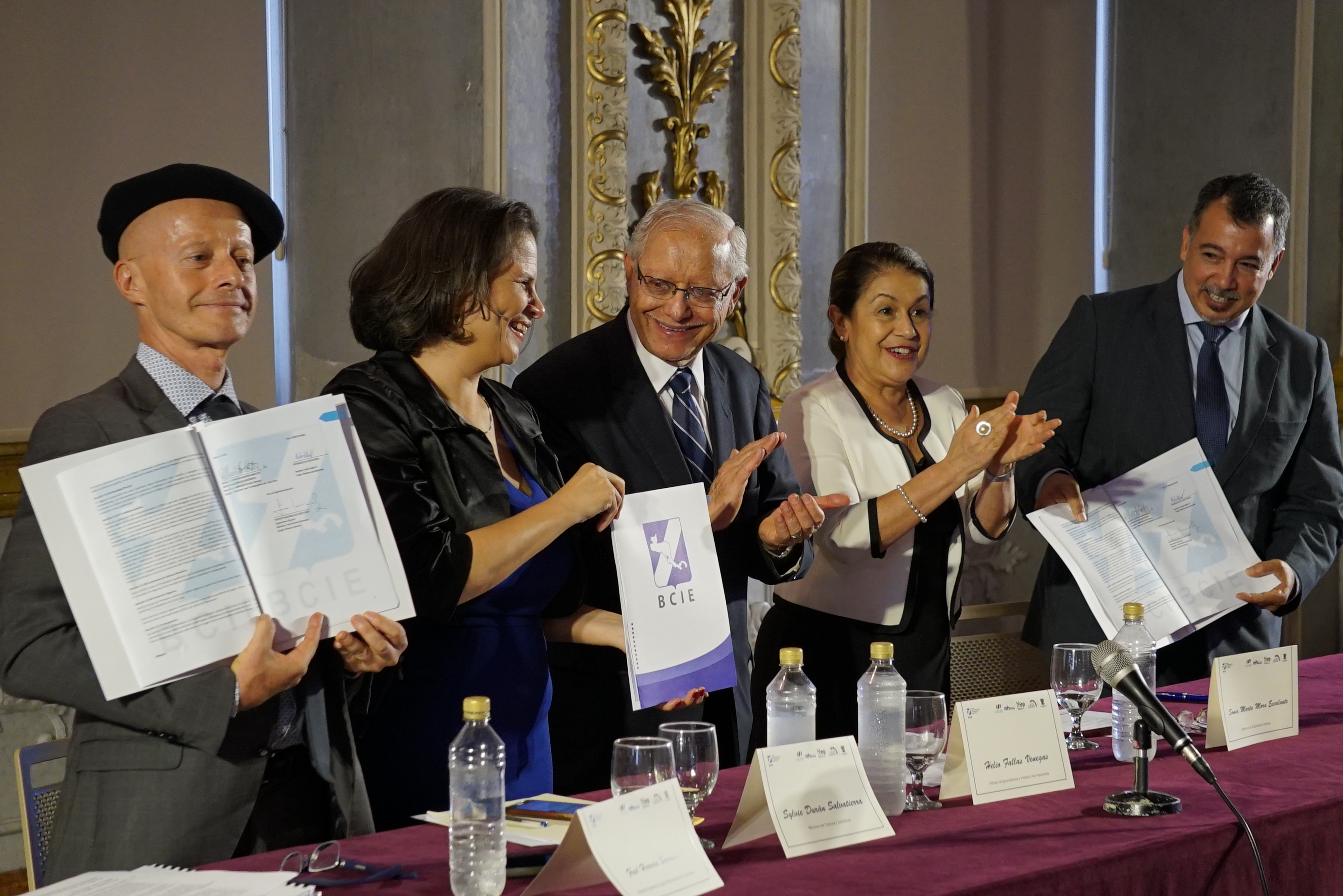 “Agradezco al Banco Centroamericano de Integración Económica por su apoyo y confianza, a los miembros de la junta directiva y autoridades del Teatro Nacional, por su preocupación y sus esfuerzos orientados a concretar el préstamo que hoy firmamos, el cual permitirá preservar un baluarte de la cultura y la historia de nuestro país”, externó Helio Fallas, primer vicepresidente y ministro de Hacienda.
