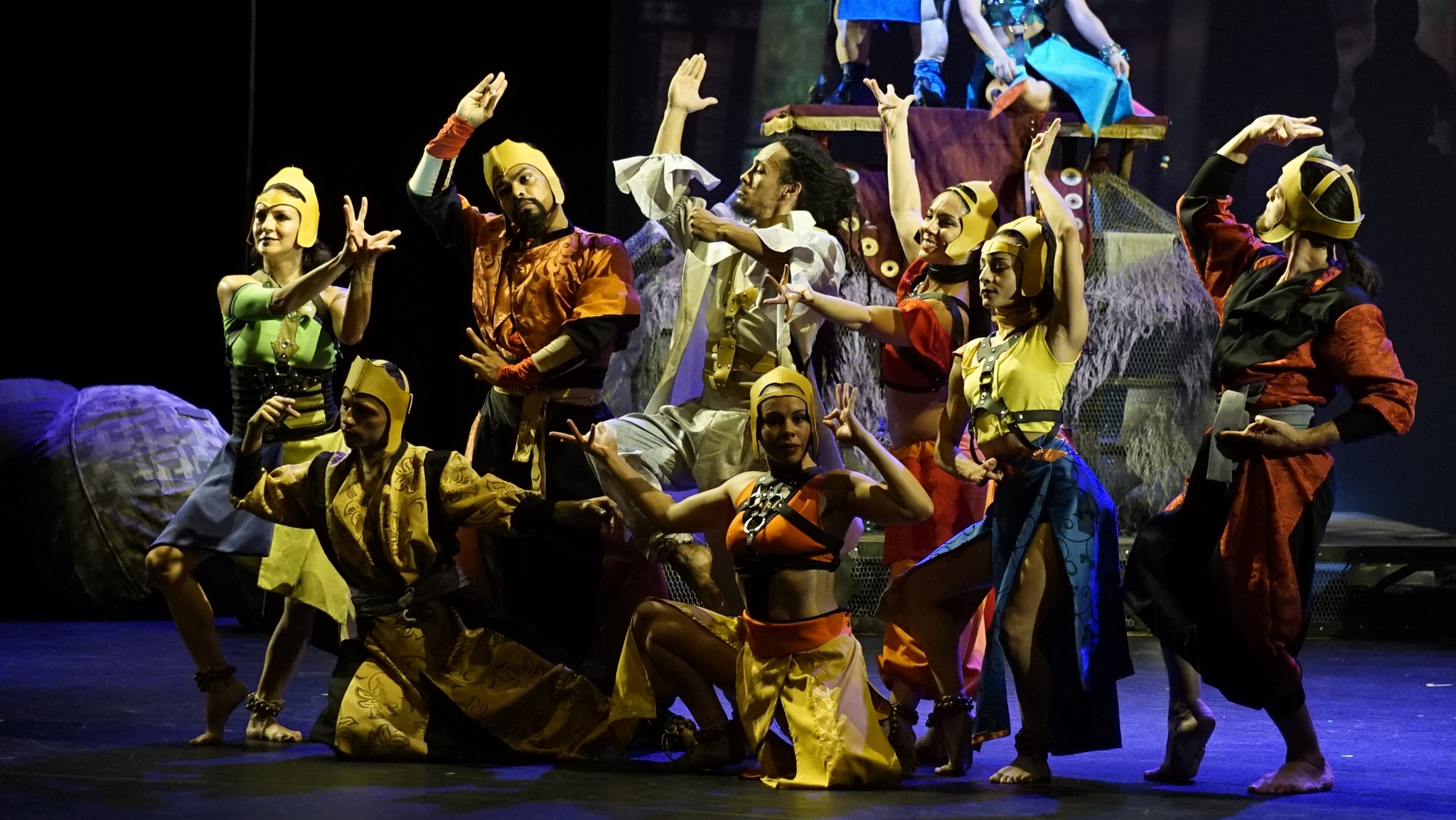 La puesta en escena combina el teatro físico, con la actuación, las artes marciales y las danzas de oriente, además se enriquecerá con un video mapping de “Tito” Fuentes, la música es original de Fabián Arroyo, la escenografía de Carlos Schmidt Fonseca y el diseño de vestuario de Erick Cascante.