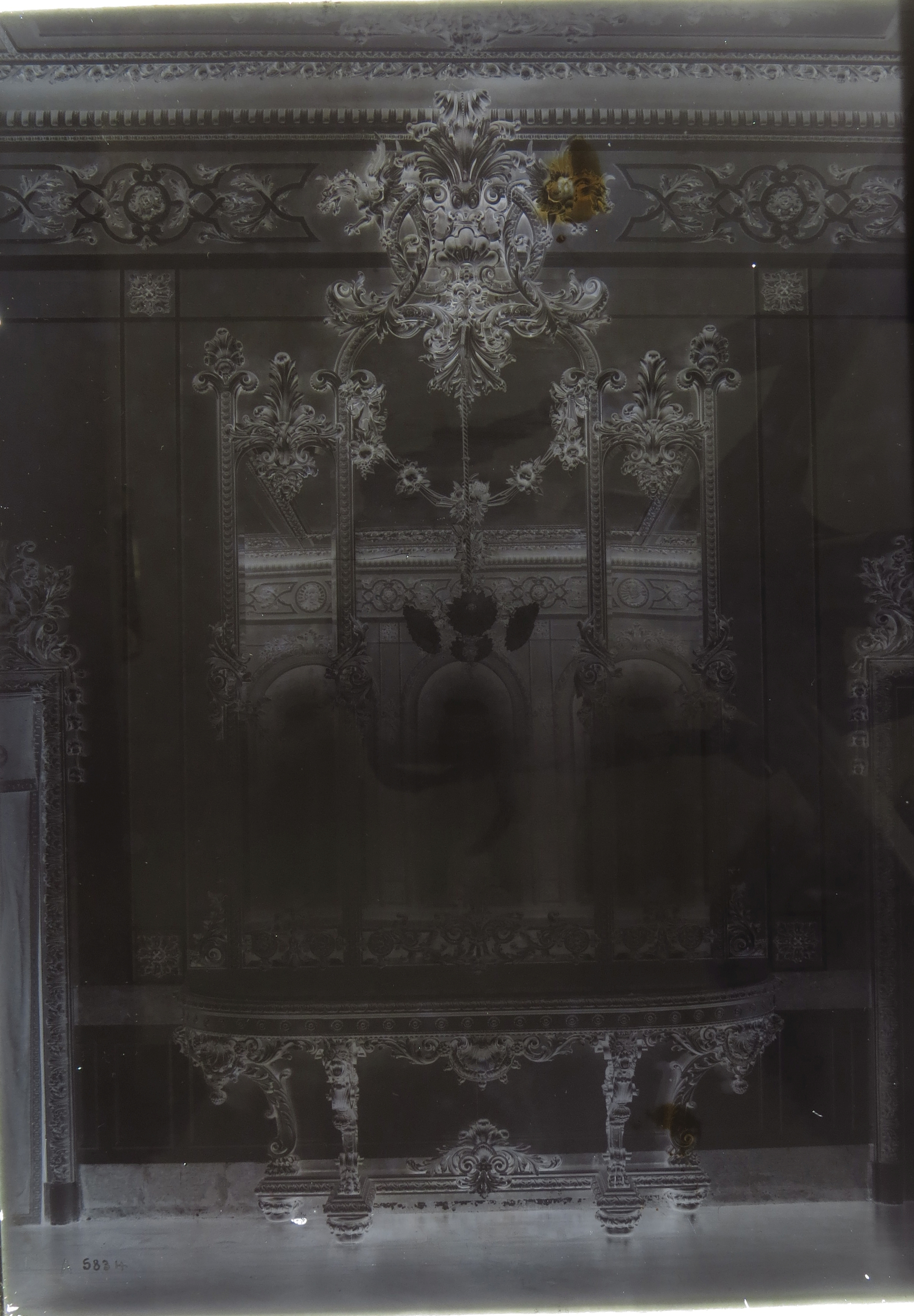 Estado a simple vista de la placa: Espejo de plata, manchas por mal lavado, rayaduras y adeherencias. Desprendimiento de emulsión en el borde izquierdo de la imagen y manchas rojizas en dos zonas de la imagen .
