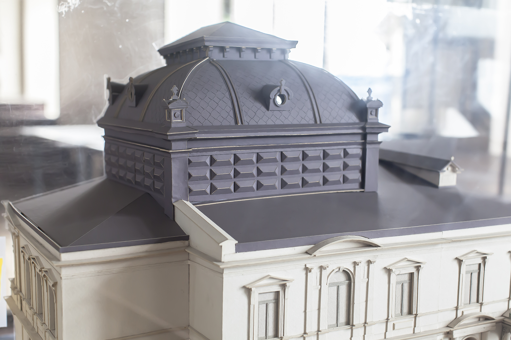 La maqueta fue elaborada para la exposición la “Aventura Cotidiana”, como muestra retrospectiva de los procesos de restauración que se habían gestionado en el inmueble hasta esa fecha.
